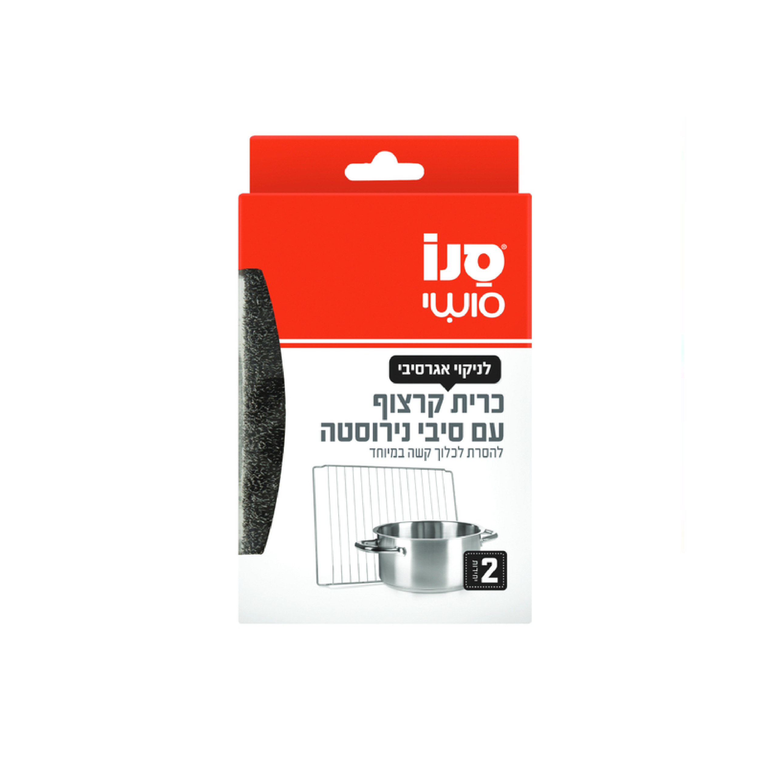 עשויה מספוג רך ומקציף העטוף במארג של סיבי נירוסטה שאינם מחלידים ומתאימים לניקוי כלים עם לכלוך קשה ועקשן במיוחד (המוצר שורט).