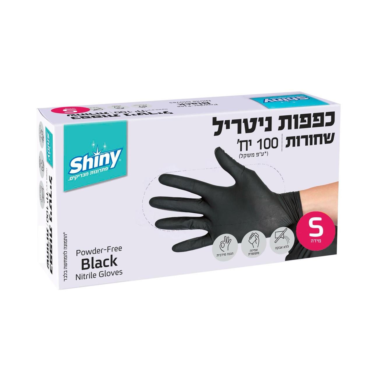 Shiny - כפפות ניטריל שחורות במידה S - סך הכל 100 יחידות